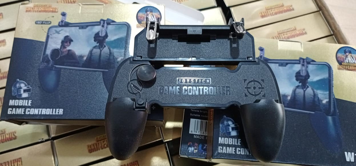 PUBG Mobile controller for IOS and Android Very High Quality Controller for Gamers only Only Suitable For Professional Long Time Gamers For Android/iOS Supports 5.5 to 6.5 inch screen mobile phones Can be used while charging, very good gaming experience Equipped with the direct function of the mobile phone Can also be used as the phone bracket when not playing the game Made of high quality material, ergonomic design, very durable. Flexibility, precision, comfort, easy to control. Compact and portable. Single point support on the top of the phone card slot can effectively prevent accidental touch of the phone volume button / shutdown button The main body bracket can be stretched up and down The EV foot pad is attached to the mobile phone contact position to reduce damage to the phone and prevent slippage.